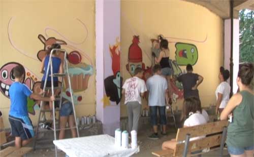 Prolaznicima u Vanju bilo je interesantno da posmatraju process nastajanja grafita koje su osmislili mladi animatori.