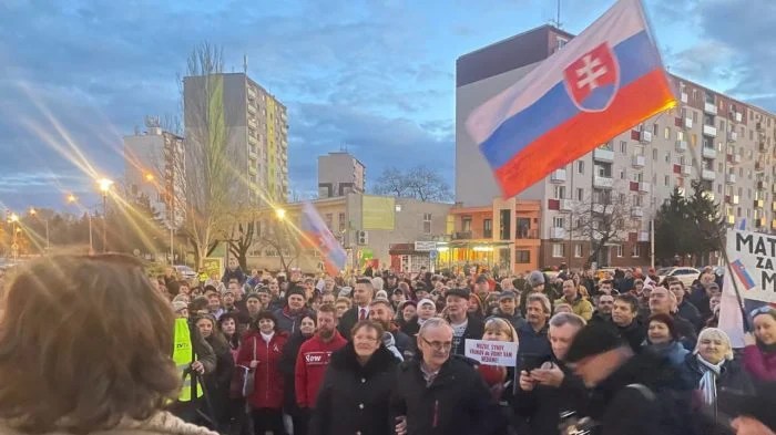 Protesti „Marš za mir“ održani su u slovačkim gradovima Novi Zamki i Rimavska Subota. Protesti se odvijaju kao gradjanska inicijativa, bez pomoći političkih partija, pa je njihova masovnost i rasprostranjenost prilično zabrinula liberalnu vlast u Slovačkoj. Političari mogu na skupovima da učestvuju ali bez isticanja stranačke pripadnosti, samo kao obični gradjani. Izvor-foto: Agencije i portal