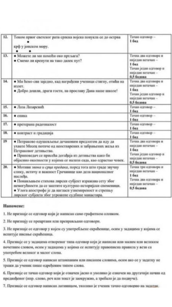 Mala matura odnosno završni ispit na kraju osnovnog obrazovanja i vaspitanja ove godine se održava 18, 19. i 20. juna, a polaže ga 67.430 učenika koji su završili osmi razred i odraslih koji su obavezno obrazovanje završili po programu za funkcionalno osnovno obrazovanje odraslih. Učenici osmog razreda danas, prvog dana, polagali su test iz srpskog, odnosno maternjeg jezika, sutra sledi test iz matematike, a trećeg dana test iz predmeta po izboru. Kada je reč o odraslima oni će sve testove polagati 18. juna. FOTO: PRINTSCREEN