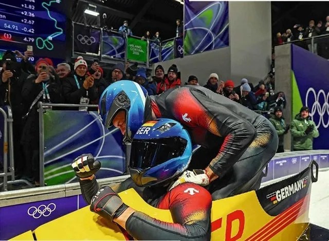 Stisnuta šaka, čak i međunarodni gledaoci u pozadini oduševljeno aplaudiraju: Nemački dvočlani bob tim Johannesa Lochnera i Georga Fleischhauera osvojio je olimpijsko zlato s četiri majstorska trčanja.